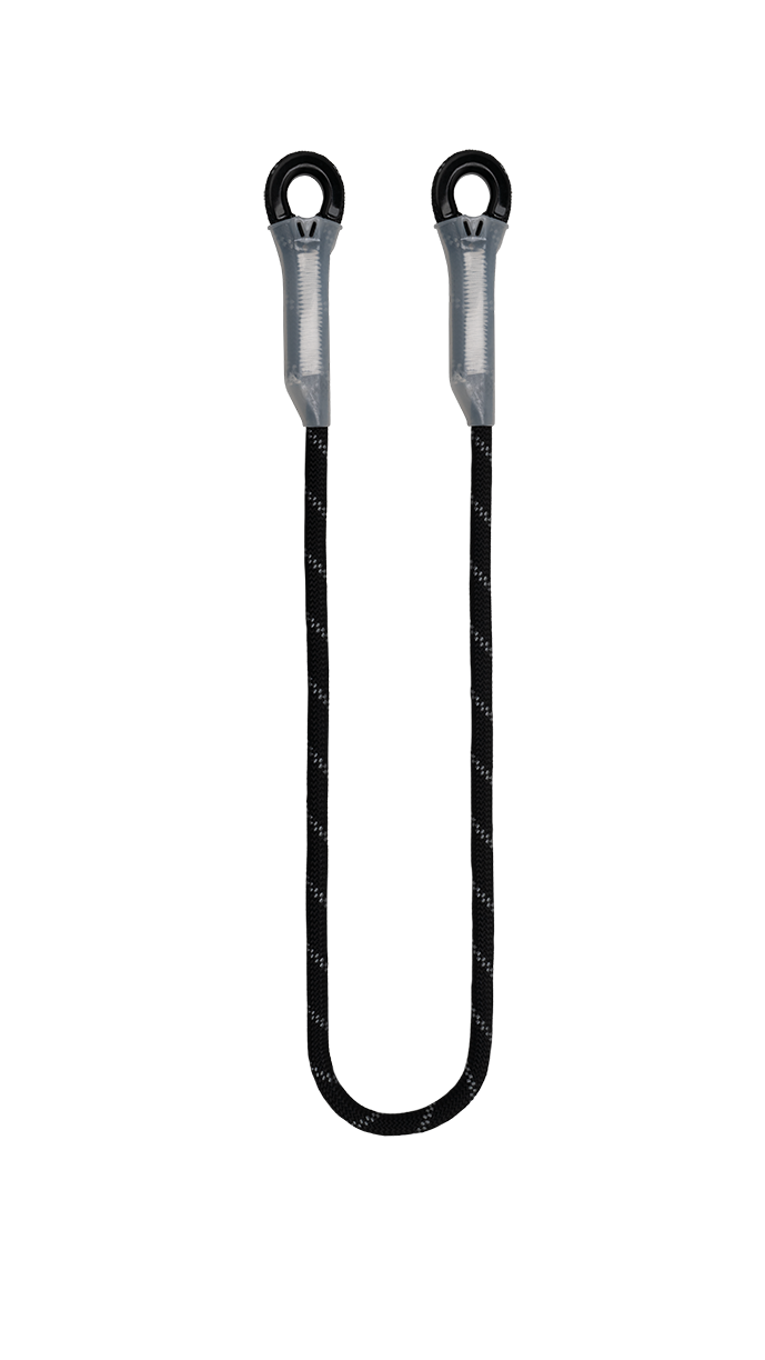 Cuerda de conexión **semiestática** Ø **12 mm** · **1,5 m** (retención/sujeción). **EN 354**. No apta para detención de caídas. Con **guardacabos** en extremos.
