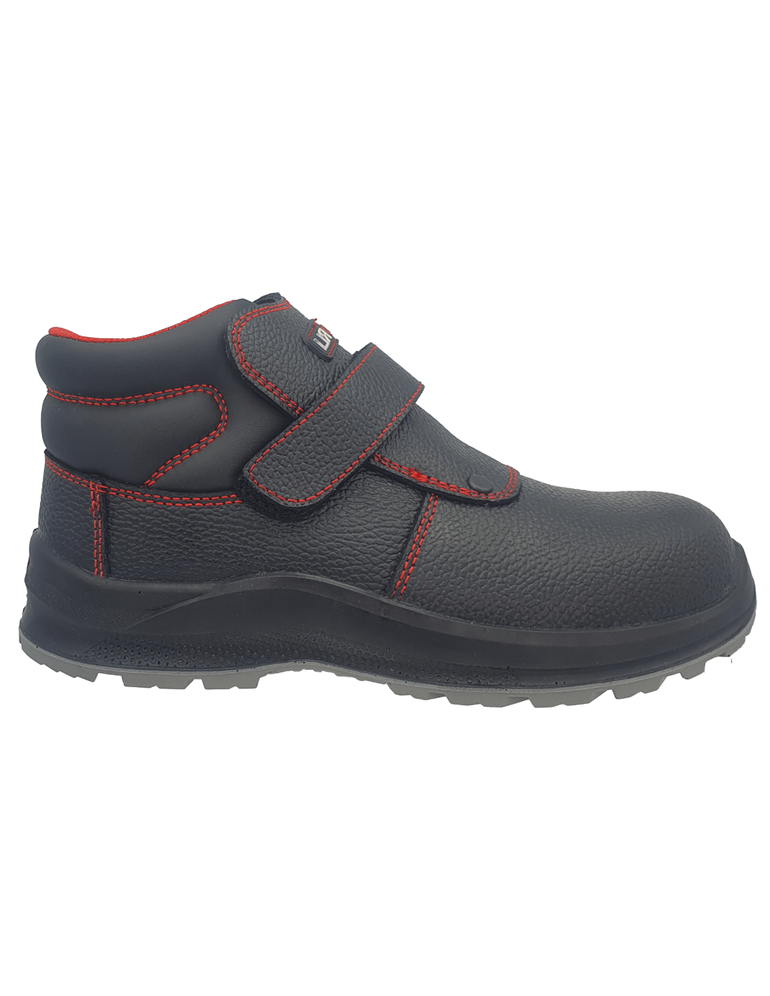 Bota de seguridad S3 fabricada en piel grabada negra. Puntera no metálica (fibra de vidrio) y plantilla anti-perforación textil. Cuello y forro acolchados con espuma transpirable para mayor confort. Cierre mediante velcro. Suela exterior con tecnología LD Cloud Comfort en poliuretano de doble densidad para excelente amortiguación y agarre.